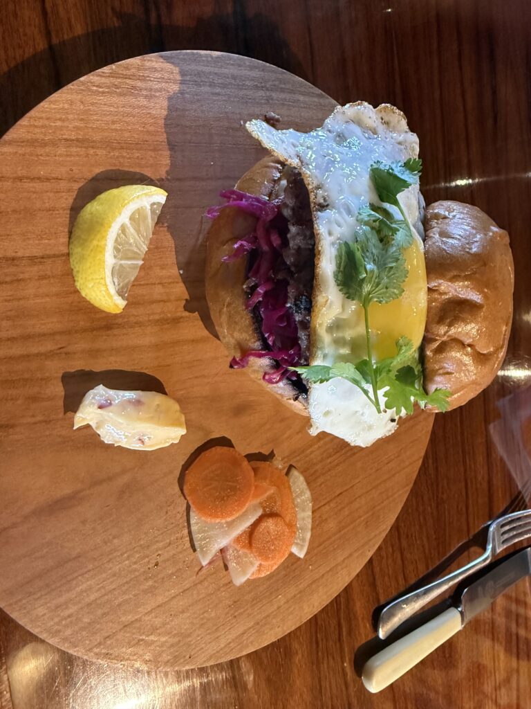 この日は、朝から気合い入れてカレーを食べて行ったので、猪パテのハンバーガーにしましたよ。