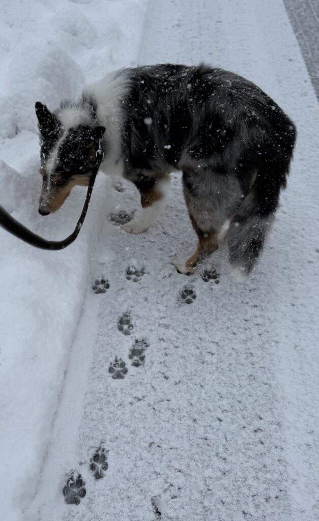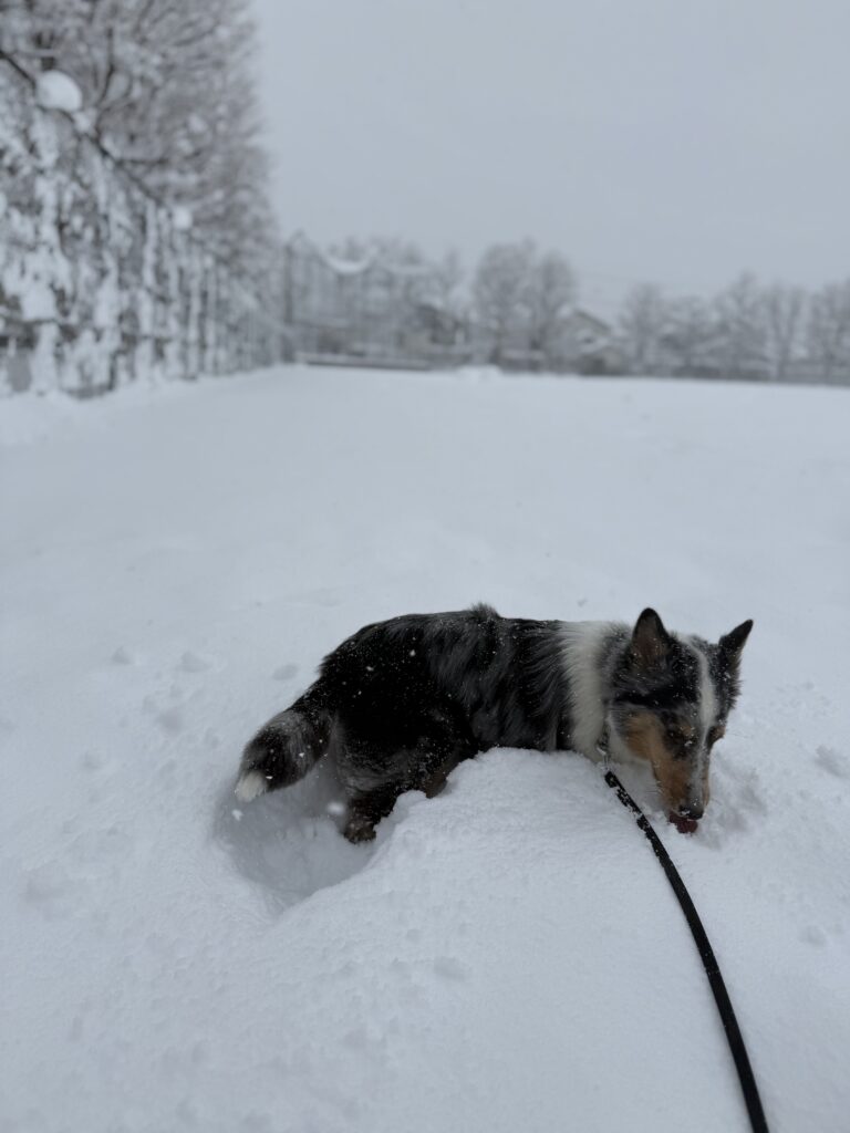 雪にも負けず、元気に犬と遊んでいるのですが