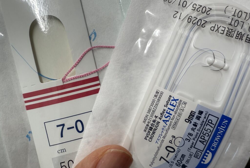 下制術や眼瞼挙筋短縮術などにも使用している強度が非常に強い糸です。